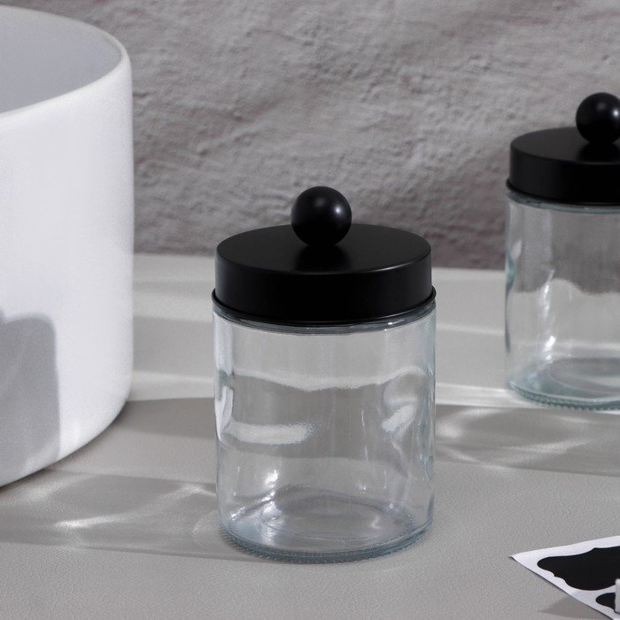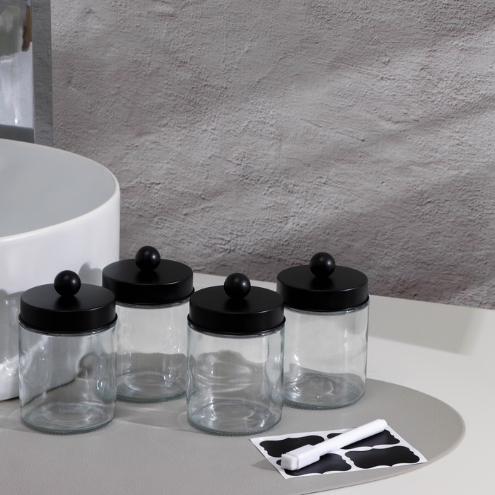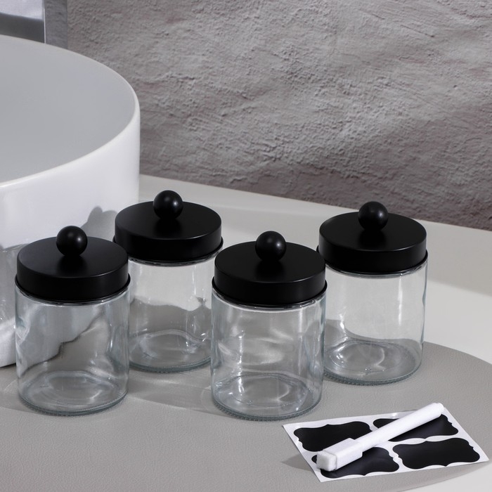 Набор баночек для ванной, 4 шт по 270 мл, стекло, цвет чёрный