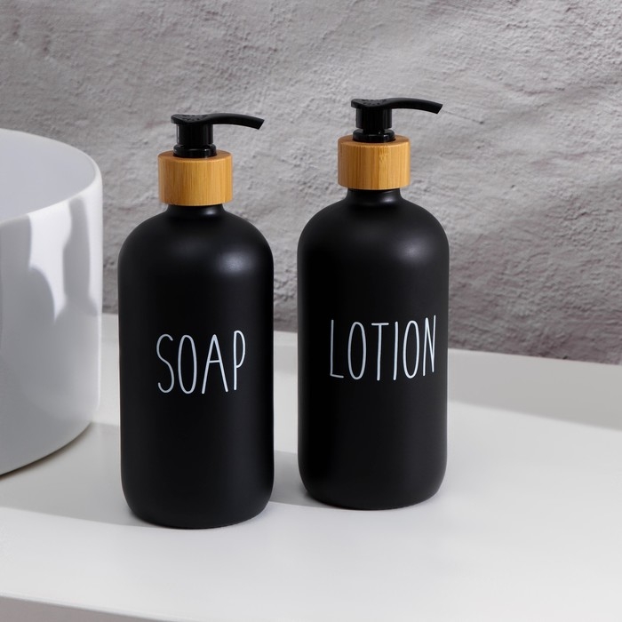 Набор дозаторов для ванной на подносе из бамбука, по 500 мл, стекло, цвет чёрный