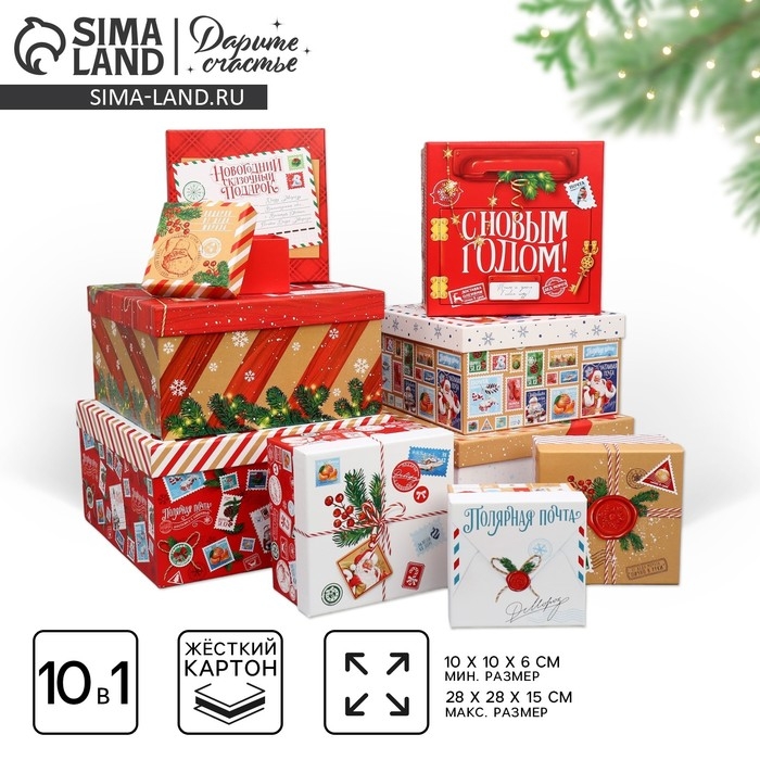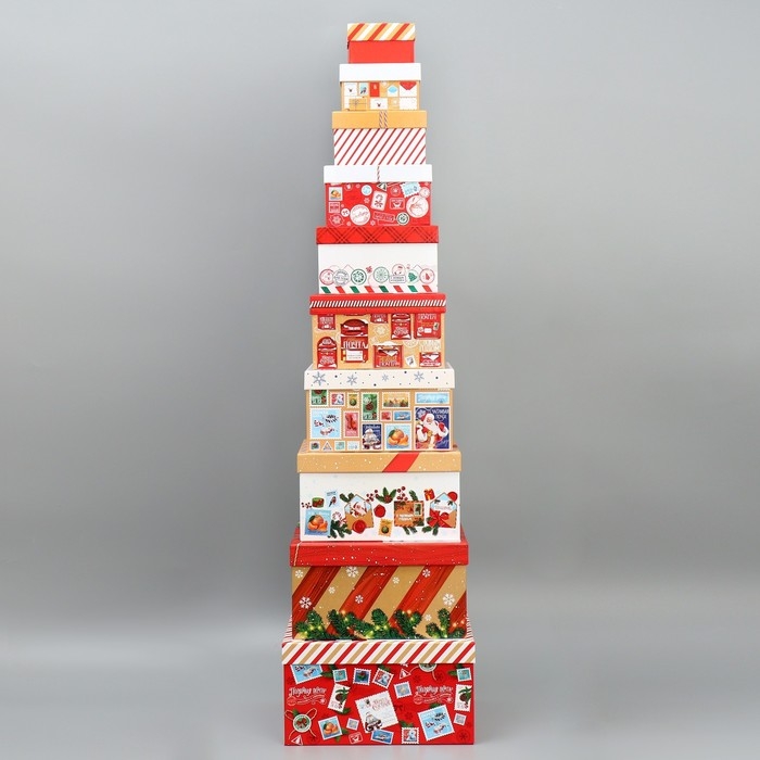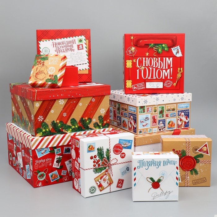 Набор подарочных коробок 10 в 1 «Новогоднее послание», 10 х 10 х 6 – 28 х 28 х 15 см, Новый год