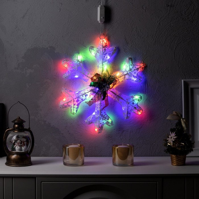 Светодиодная фигура «Снежинка» 30 см, металл, 220 В, свечение мульти