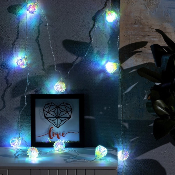 Гирлянда «Нить» 2.5 м с насадками «Груши», IP20, прозрачная нить, 10 LED, свечение белое, 220 В