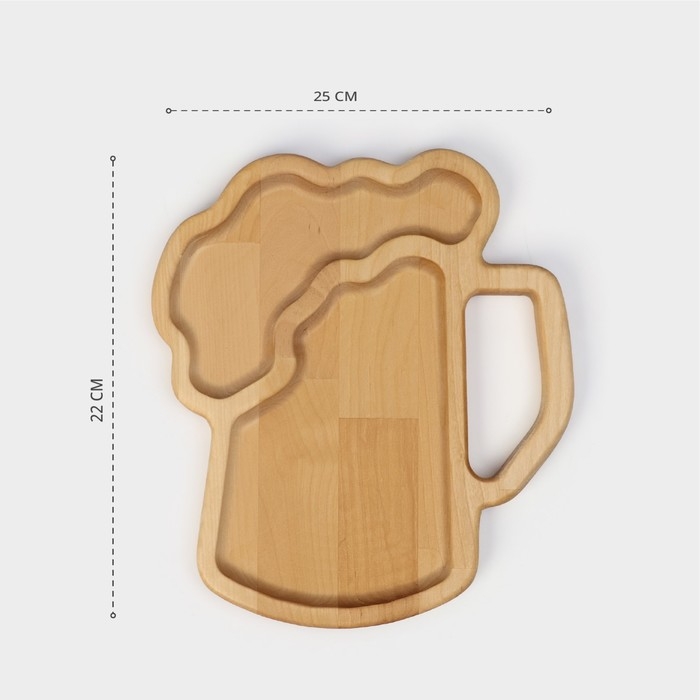 Менажница Adelica для подачи «Пивная кружка», 2 секции, 25×22×1,8 см, пропитано минеральным маслом, в подарочной коробке, берёза