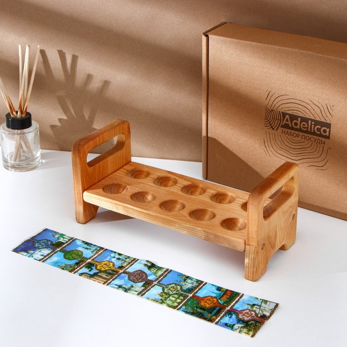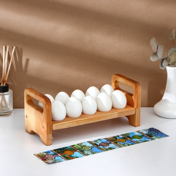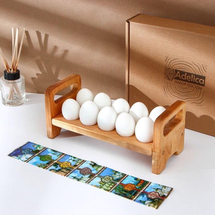 Пасхальный набор Adelica, подставка для яиц на ножках 10 ячеек, термонаклейки 7 шт, берёза