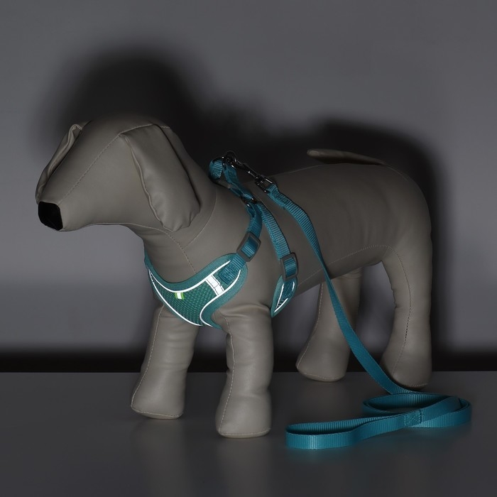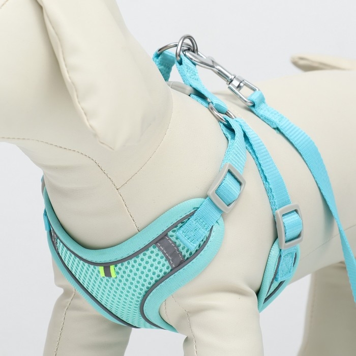 Комплект с мягкой шлейкой, быстросъемный, S, поводок 140 см, ОШ 39-41 см, ОГ 44-48 см, бирюзовый