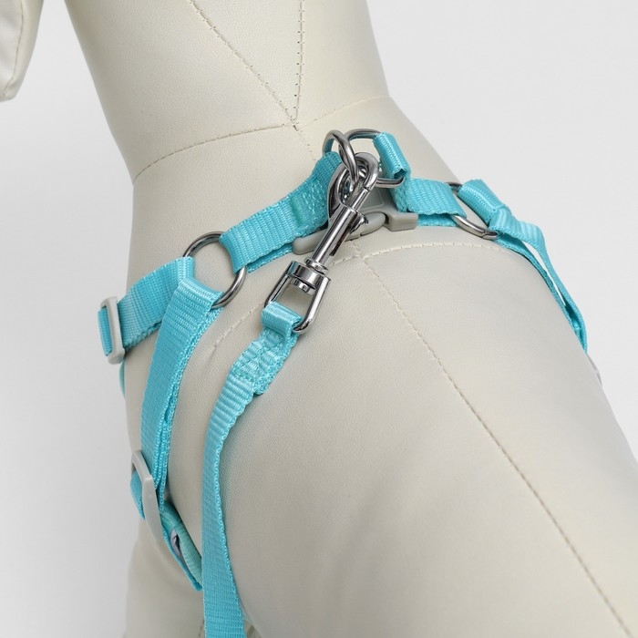 Комплект с мягкой шлейкой, быстросъемный, M, поводок 140 см, ОШ 44-48 см, ОГ 51-60 см, бирюзовый