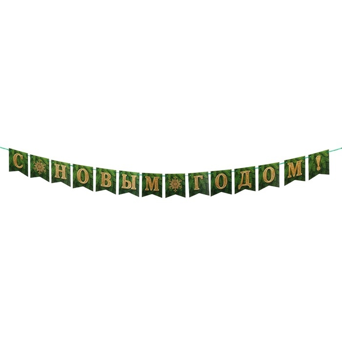 Гирлянда "С Новым Годом!" зелёный цвет, 14 деталей, 350 см