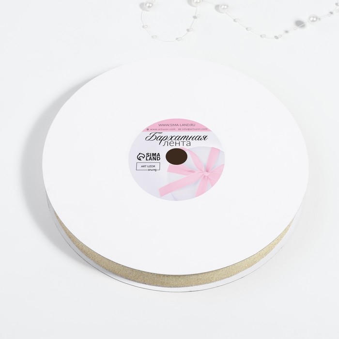 Лента бархатная, с золотым люрексом, 20 мм, 18 ± 1 м, цвет белый №01
