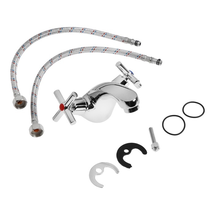 Смеситель для раковины ZEIN Z2736, кран-букса латунь 1/2", с подводкой, хром