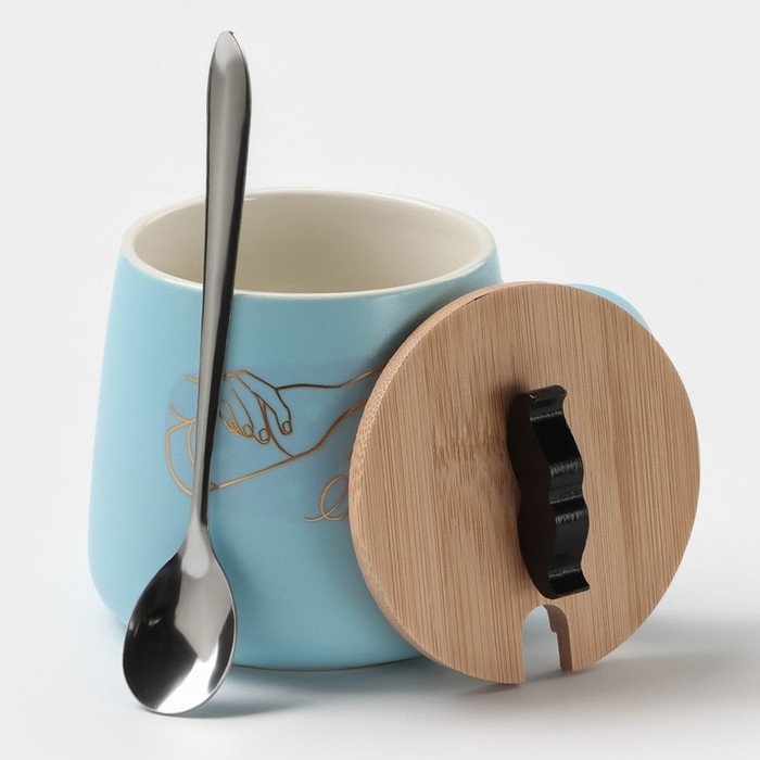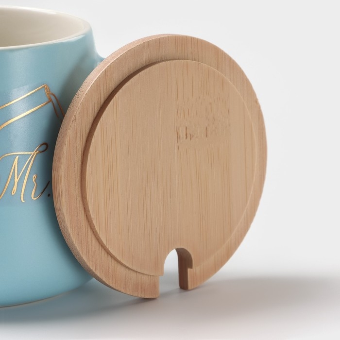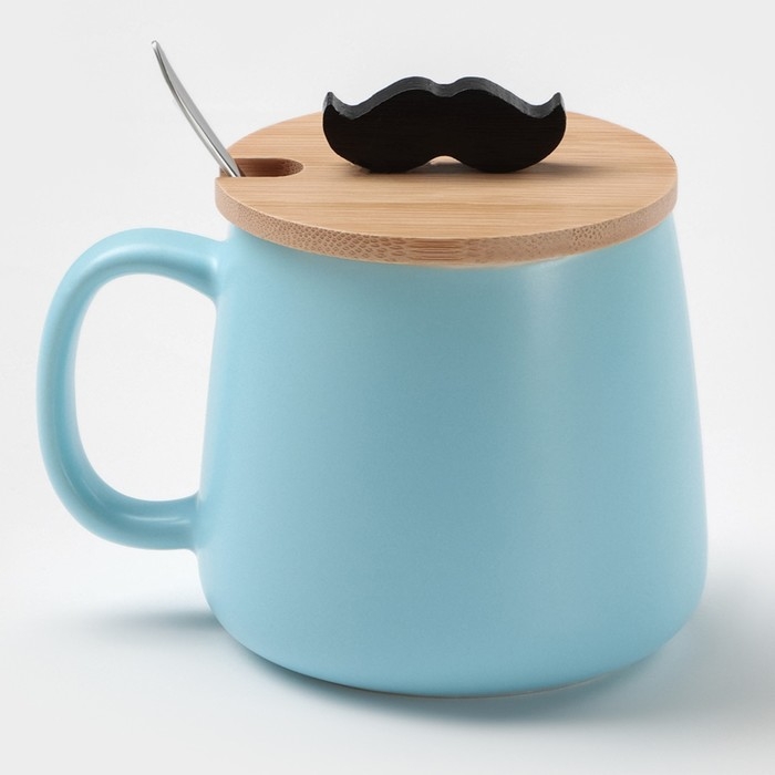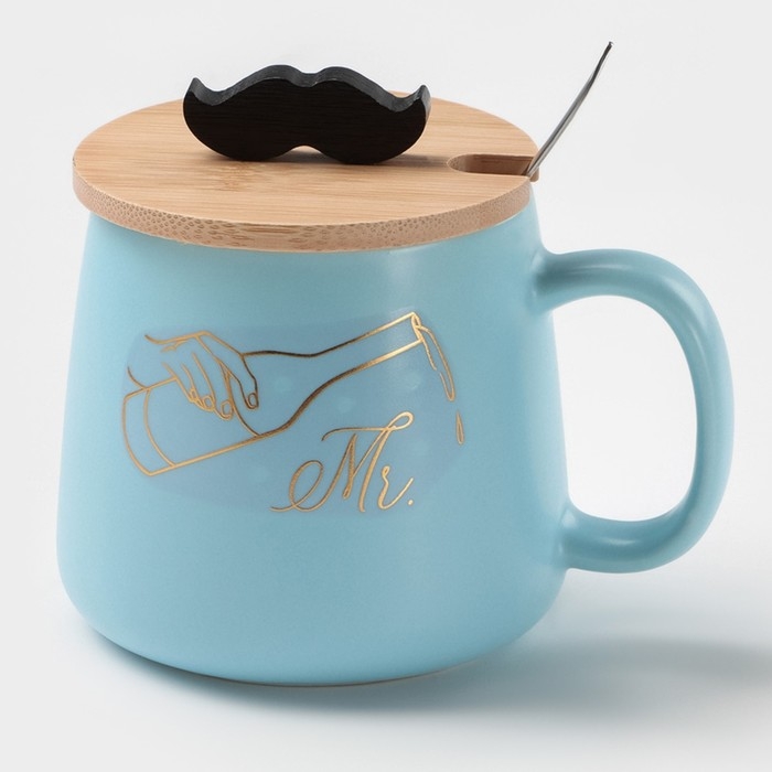 Кружка керамическая с ложкой «Мистер», 380 мл, цвет голубой
