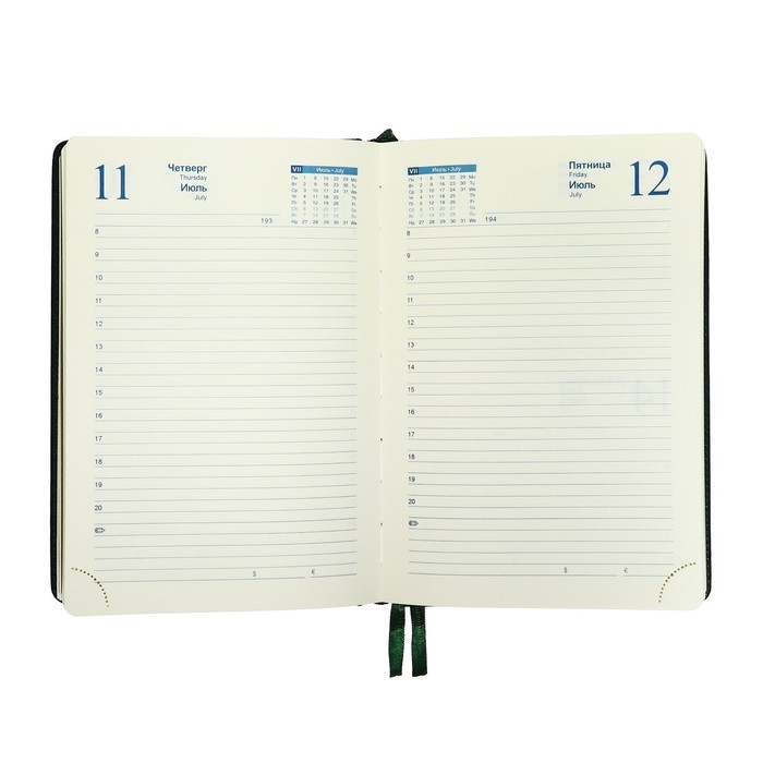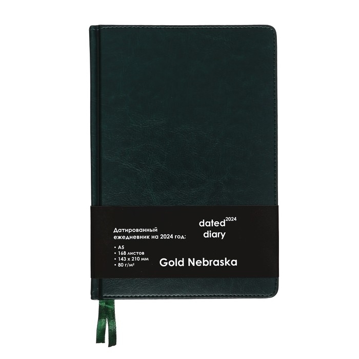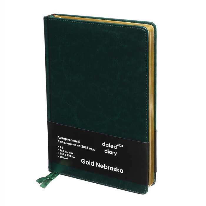 Ежедневник датированный 2025 года, A5, 168 листов в линейку, кожзам "Небраска", золотой срез, зеленый