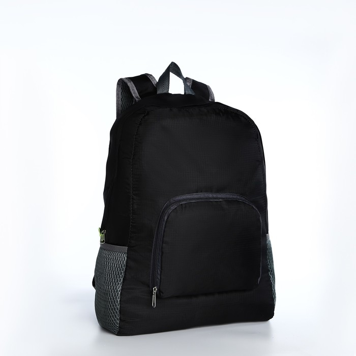 Рюкзак складной, отдел на молнии, наружный карман, 2 боковых кармана, цвет чёрный