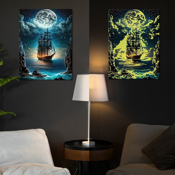 Картина по номерам со светящейся краской, 40 × 50 см «Корабль в лунном свете» 26 цветов
