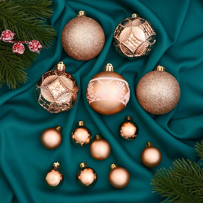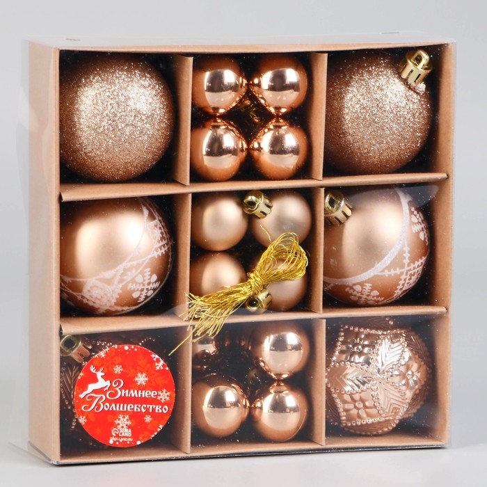 Набор шаров пластик 30 шт d-3 и 6 см "Изабель" ассорти, золото