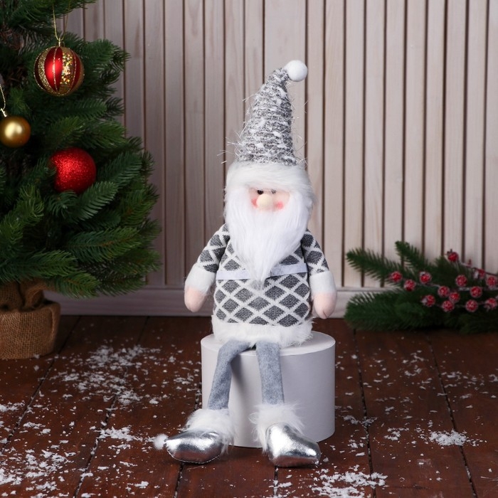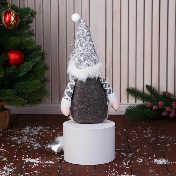 Мягкая игрушка "Дед Мороз в костюме с ремешком" 15х39 см, бело-серый
