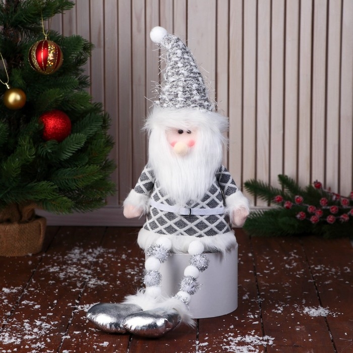 Мягкая игрушка "Дед Мороз в костюме с ремешком, ножки-бусинки" 15х39 см, серый