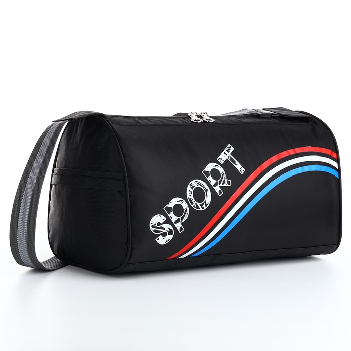 Сумка спортивная на молнии, боковой карман/сетка, регулируемый ремень, маленький размер, цвет чёрный/триколор