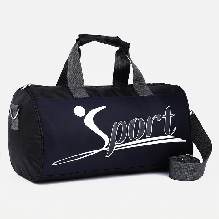 Сумка спортивная на молнии, длинный ремень, маленький размер, цвет чёрный/синий
