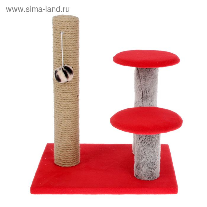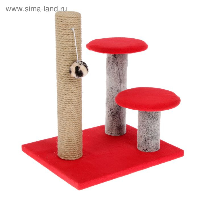 Когтеточка "Столбик" с двумя грибами, джут 43 х 36 х 31 см, МИКС ЦВЕТОВ