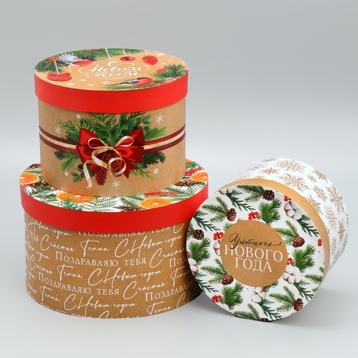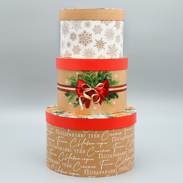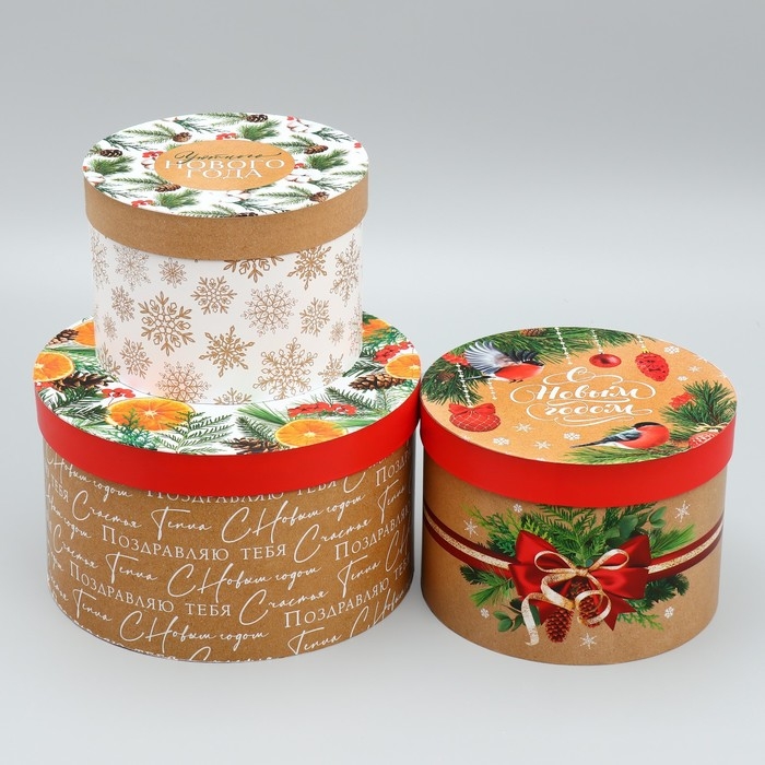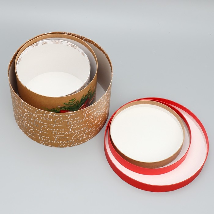 Набор коробок круглых 3 в 1 «С Новым Годом», 18 х 18 х 13 см - 25 х 25 х15 см, Новый год