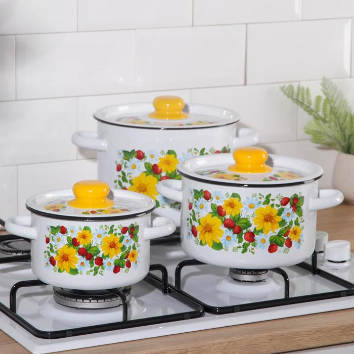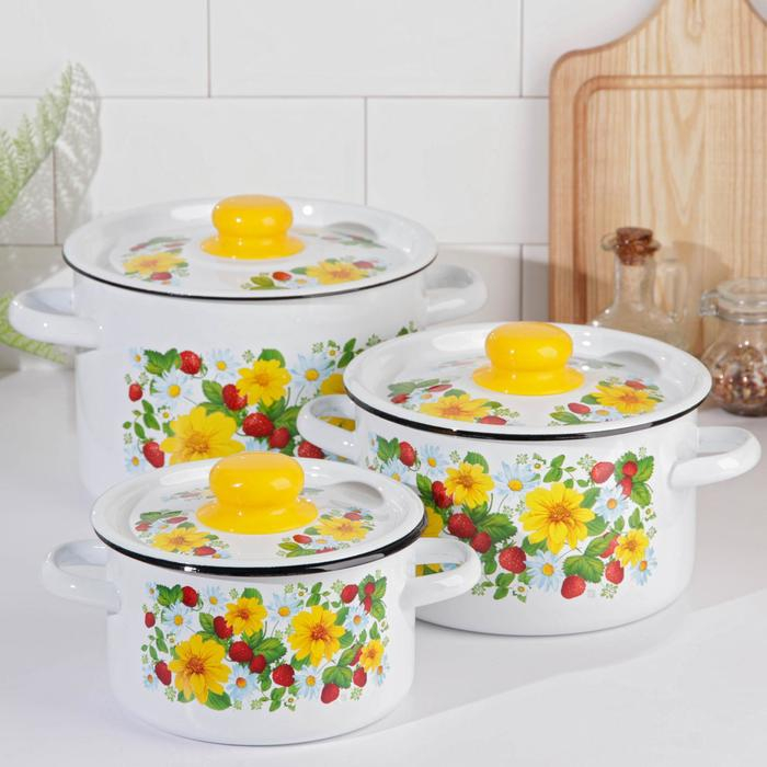 Набор кастрюль «Земляника», 3 предмета: 1,5 л, 2,9 л, 4,5 л, индукция