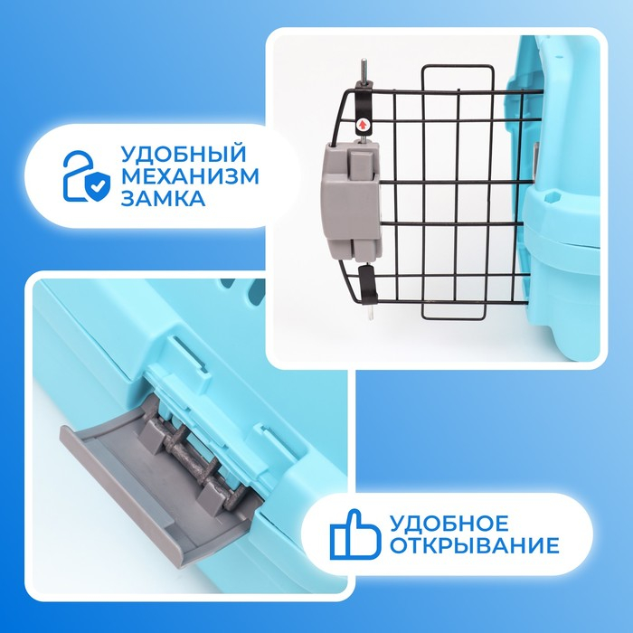 Переноска пластиковая "Неон" 48х32х29,5 см, вес животного до 12 кг, голубая