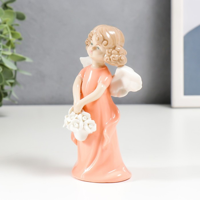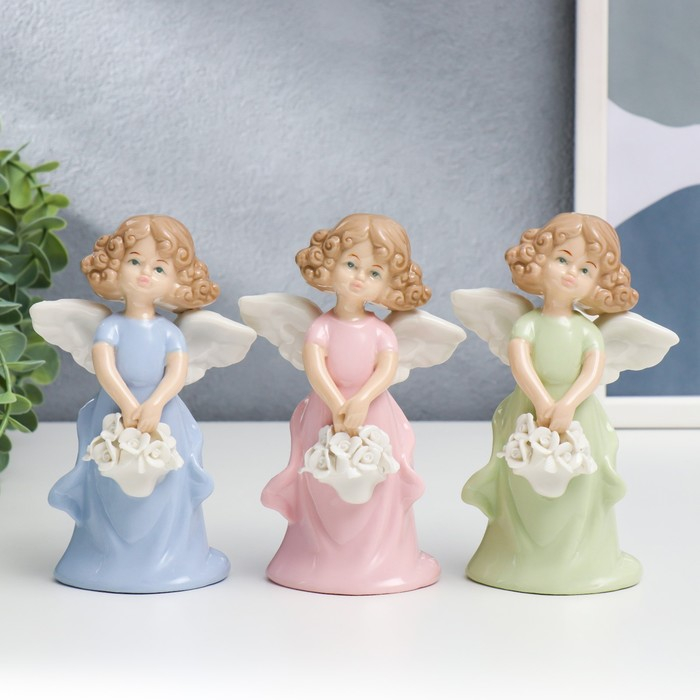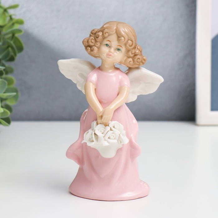 Сувенир "Ангелочек-девочка с корзинкой белых роз" 14х5х8 см, МИКС