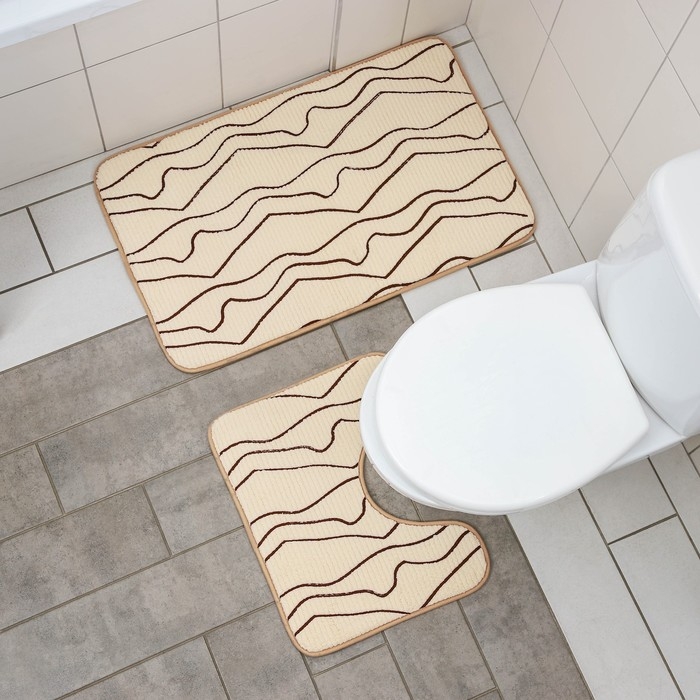 Коврики для ванной и туалета Доляна Lightning, 2 шт: 40×50 см, 50×80 см, цвет бежевый