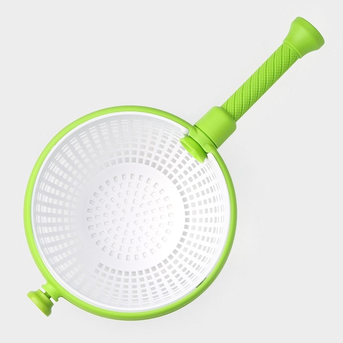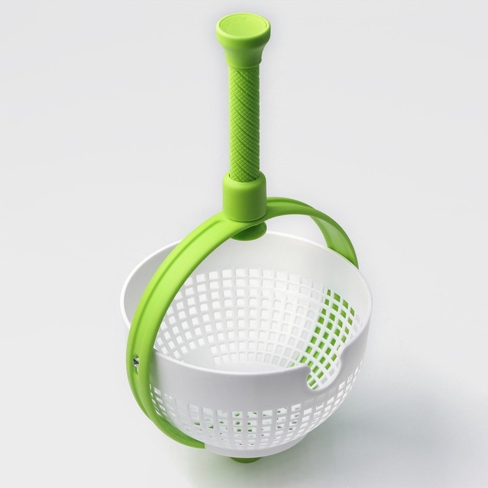 Сочетание яркого зеленого и белого цветов даже в самый холодный день напомнит о теплом лете и свежести зелени. Удобный дуршлаг с ручкой подходит не только для сушки свежих продуктов с грядки, но и для слива воды из кастрюли с макаронами, например.