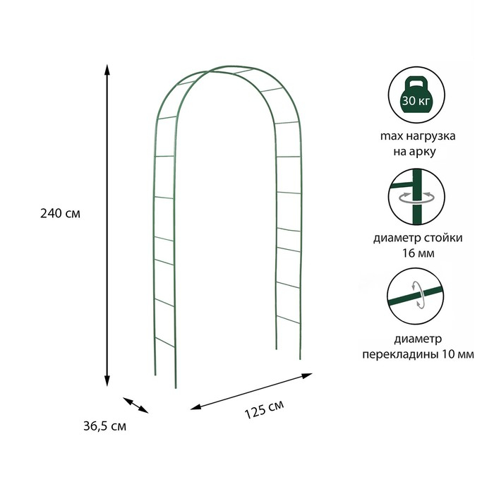 Арка садовая, разборная, 240 × 125 × 36.5 см, металл, зелёная, Greengo