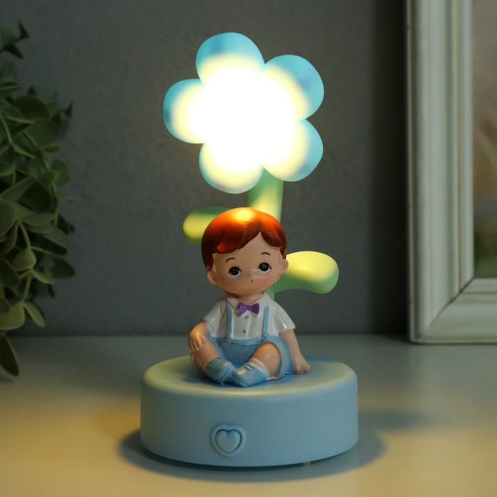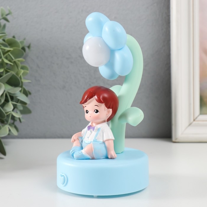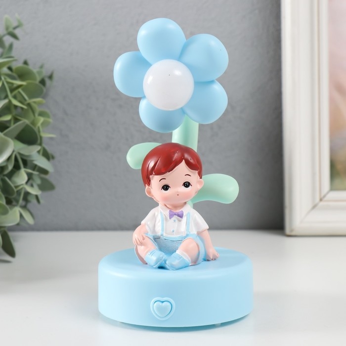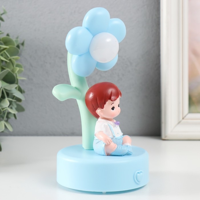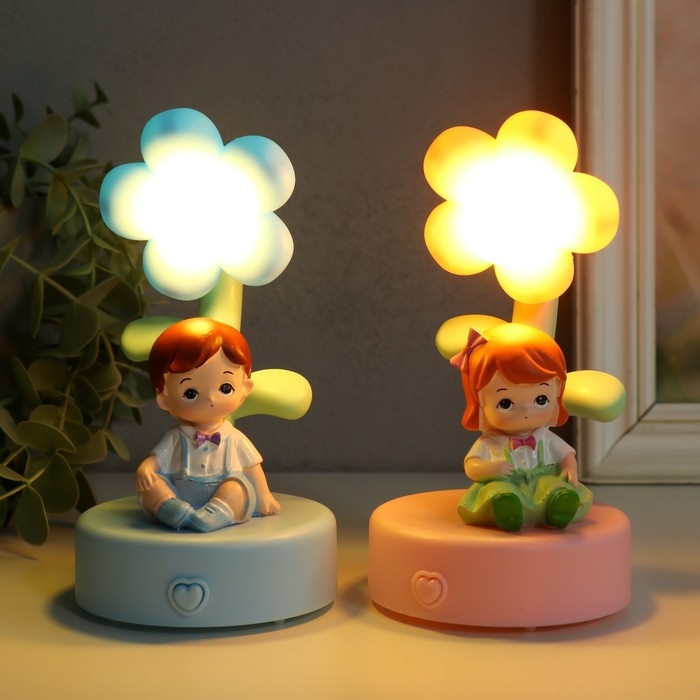 Сувенир полистоун свет "Малыш/Малышка у цветка" МИКС 14,5*8*8см