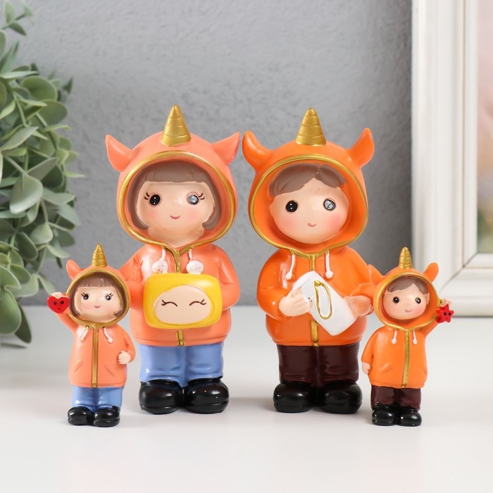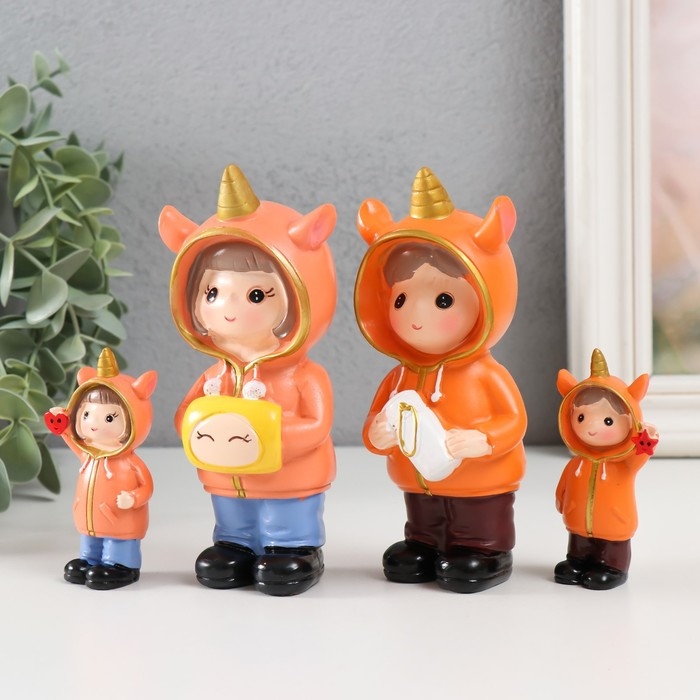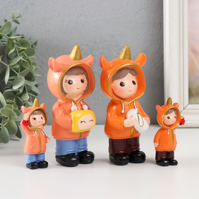 Сувенир полистоун "Малыши в толстовках с единорогом" набор 4 шт 2,5х2х7 4,5х3,5х12 см