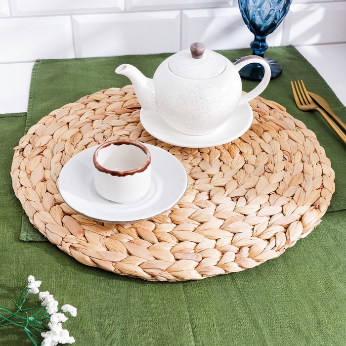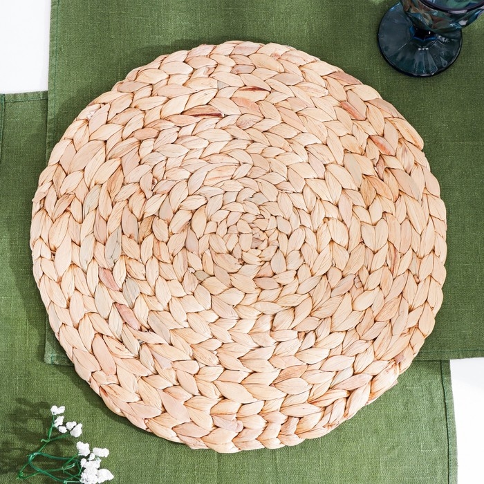 Салфетка сервировочная, d 37 х 0.5 см, плетенная, водный гиацинт