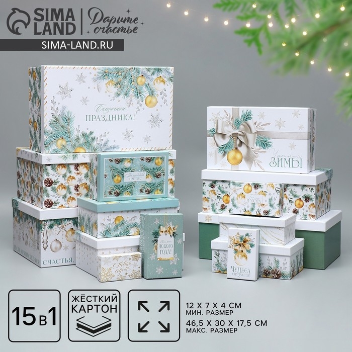 Набор коробок подарочных 15 в 1 «Чудеса случаются!», 12 х 6.5 х 4 см - 46.5 х 30 х 17.5 см, Новый год