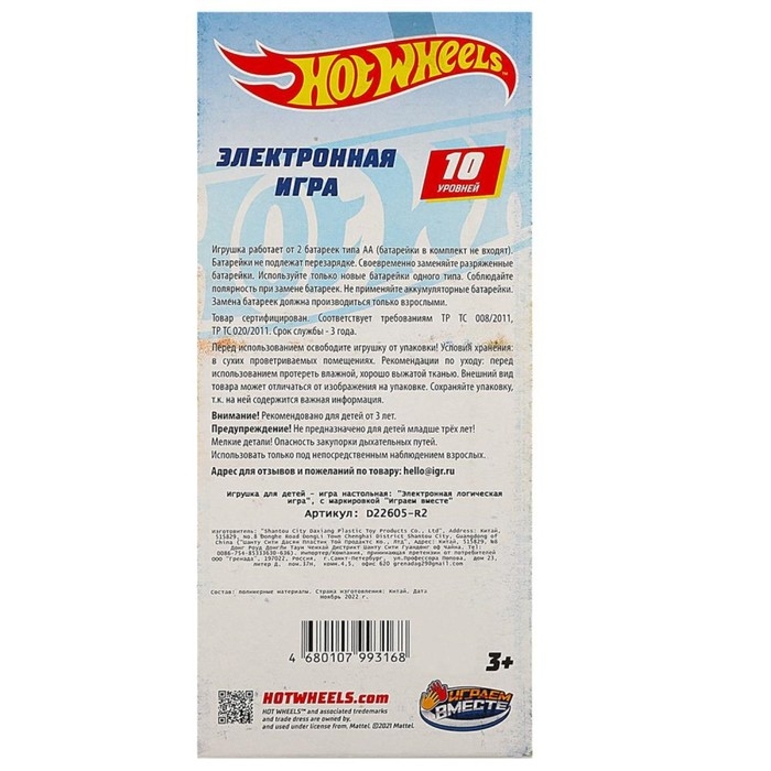 Электронная логическая игра «Hot Wheels» ТМ «Играем вместе» станет прекрасным подарком для маленьких поклонников легендарных гоночных машинок.