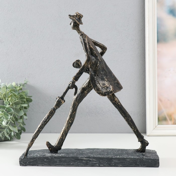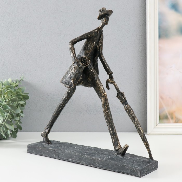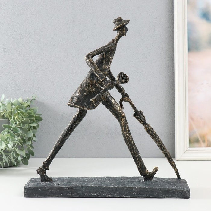 Сувенир полистоун "Человек с зонтом. На свидание" под металл 31,7х12х34,4 см