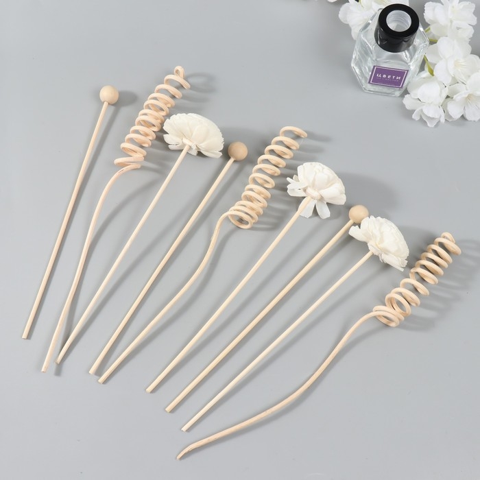 Палочки для аромадиффузора из ротанга "Белые цветы" набор 9 шт