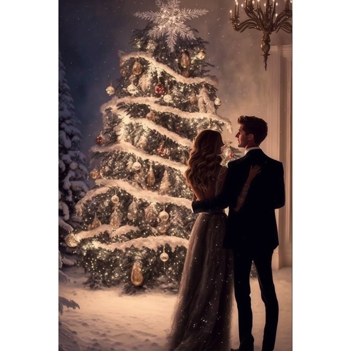 Алмазная мозаика на новый год с частичным заполнением с подрамником «Новогодняя ночь», 20 х 30 см, с гирляндой, новогодний набор для творчества