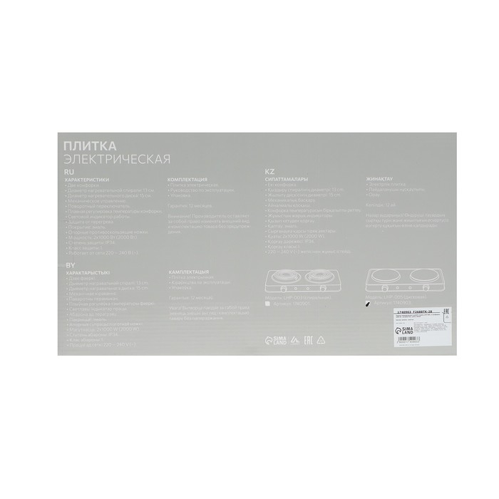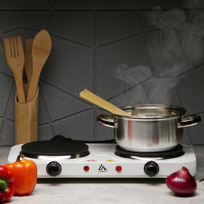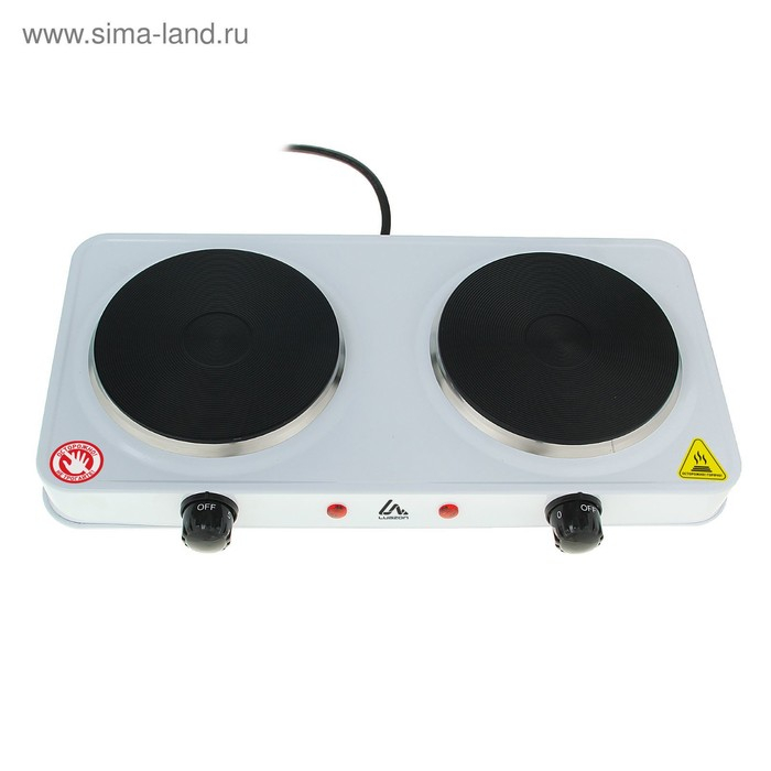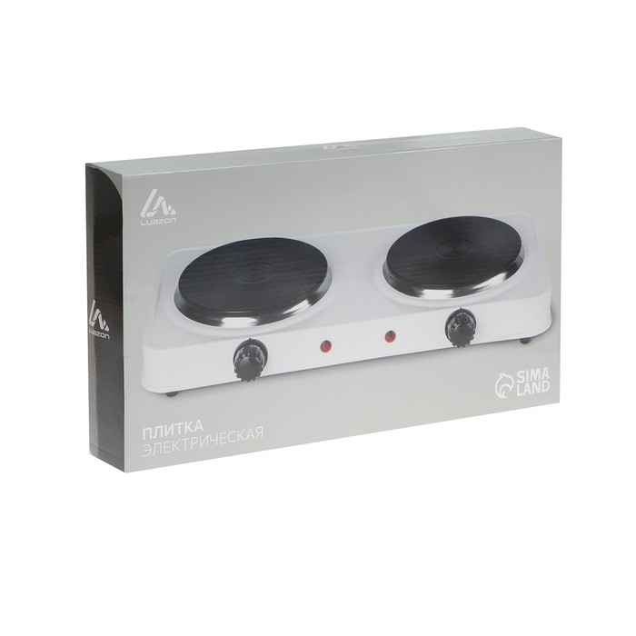 Плитка электрическая Luazon LHP-005, 2 конфорки, 2000 Вт, нагреватель диск, белая