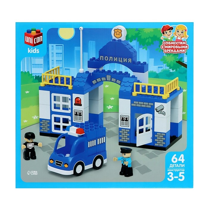 Конструктор «Полиция», наклейки в наборе, 64 детали