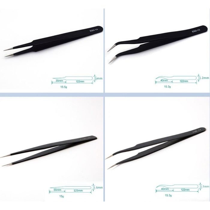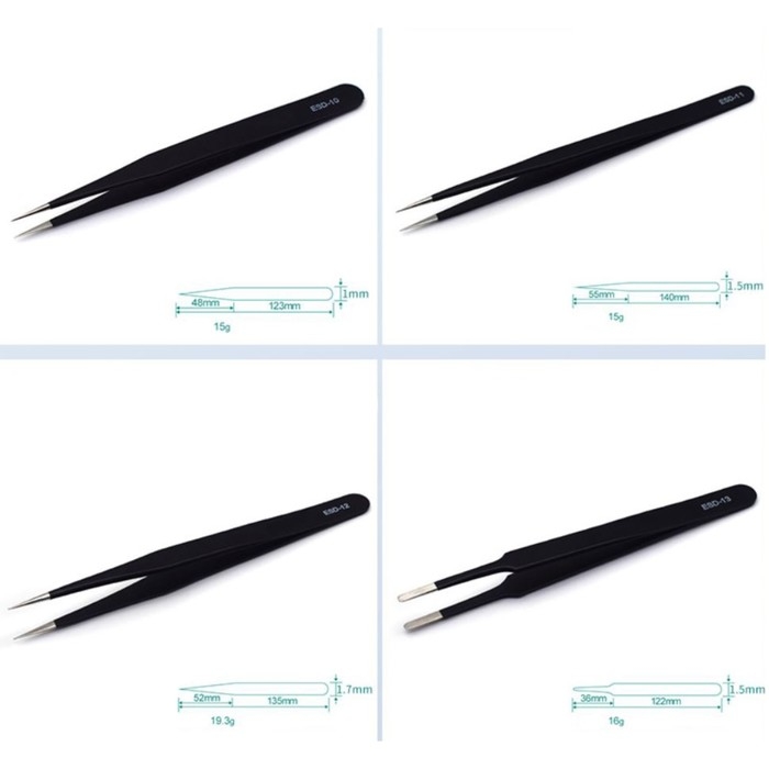 Набор пинцетов для ремонта часов. Подойдет также для творчества, работы с электроникой. Инструменты позволяют захватывать и присоединять мелкие предметы: стразы, бусины, элементы алмазной мозаики, болты, детали аппликации и т.д. Используются при изготовлении бижутерии, алмазной вышивки, мозаики, бисера, моделирования радиосхем, мелких деталей, изготовления бижутерии и других видов декоративно-прикладного творчества.