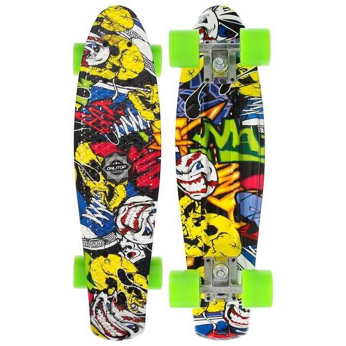 Пенниборд ONLITOP R2206, 56х15 см, колёса PU, АBEC 7, алюминиевая рама, цвет граффити