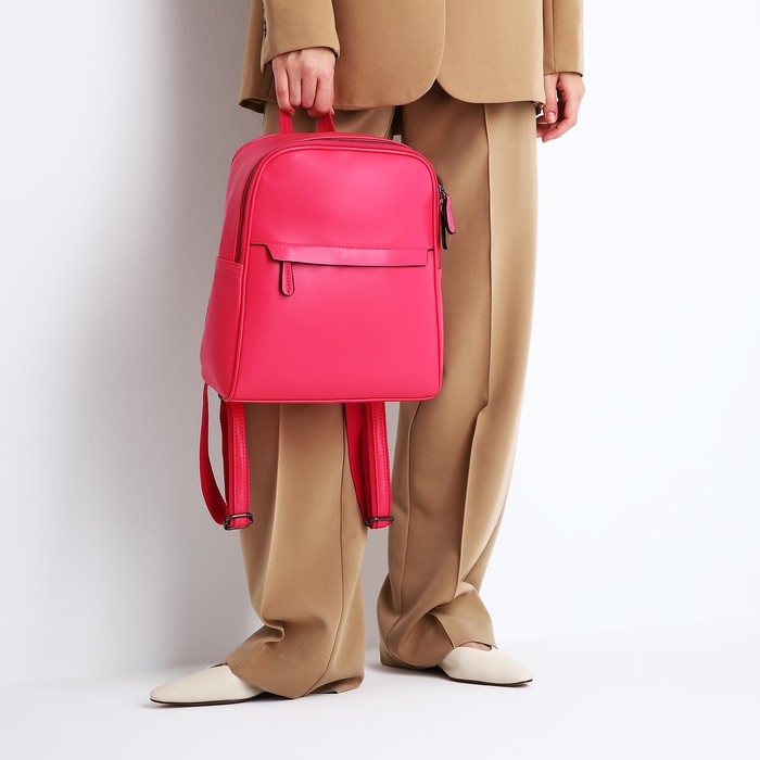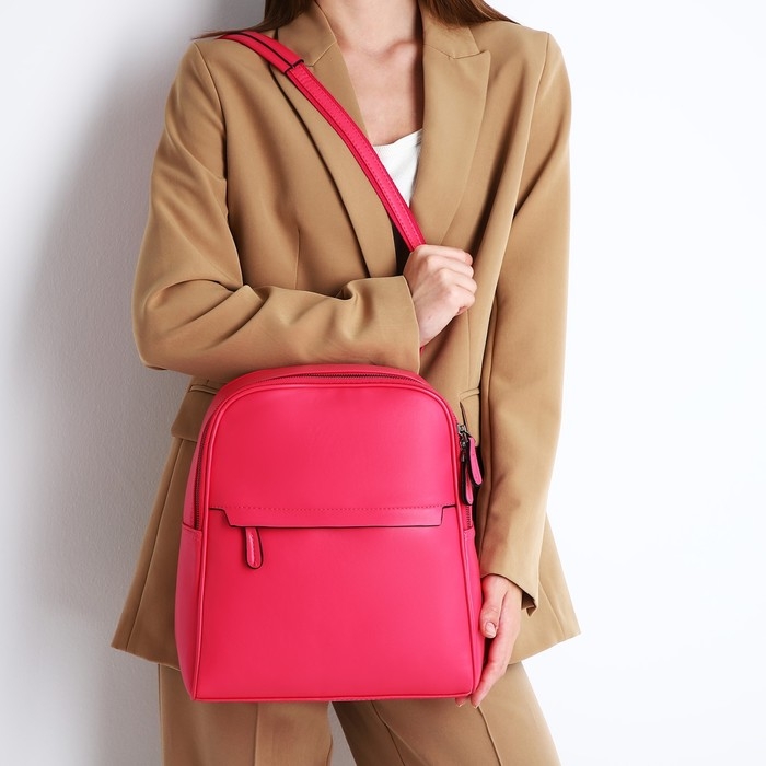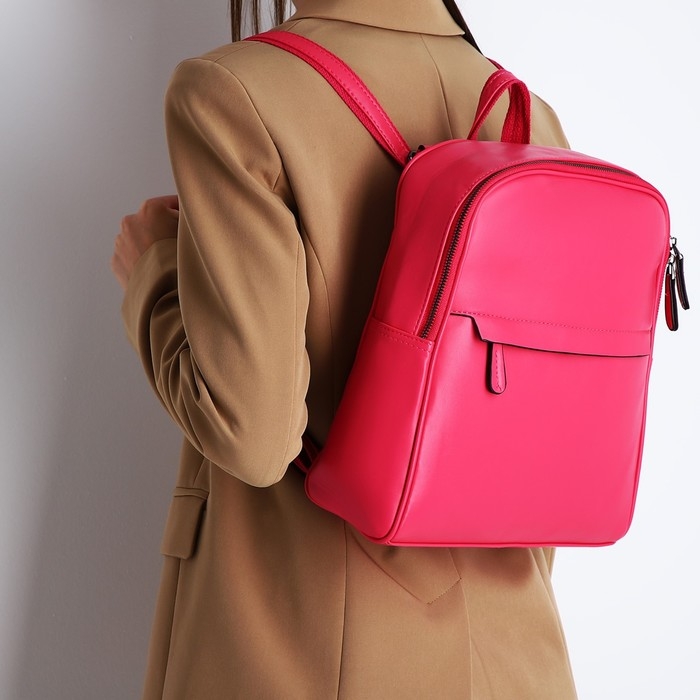Рюкзак женский из искусственной кожи на молнии, 2 кармана, цвет фуксия