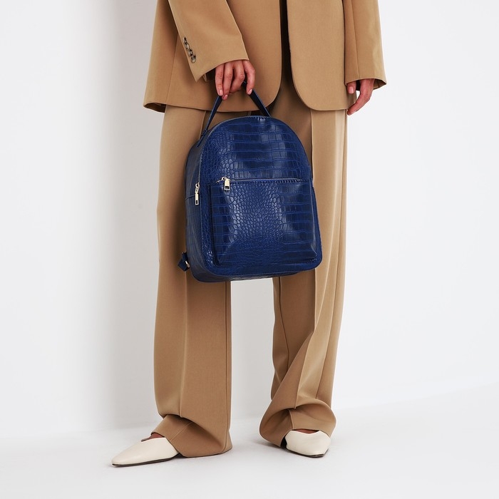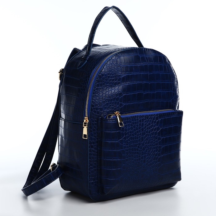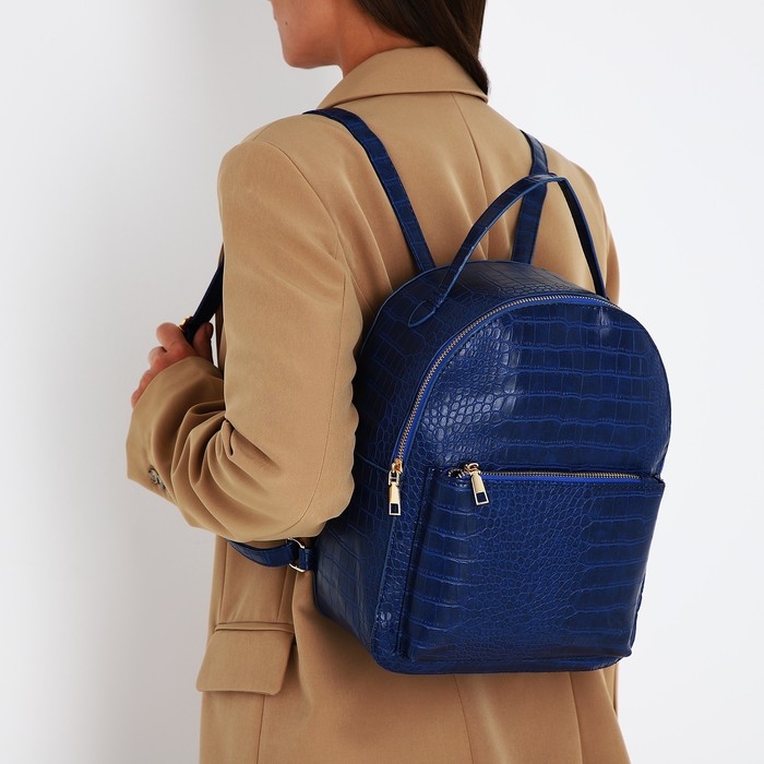 Рюкзак женский из искусственной кожи на молнии, 1 карман, цвет синий