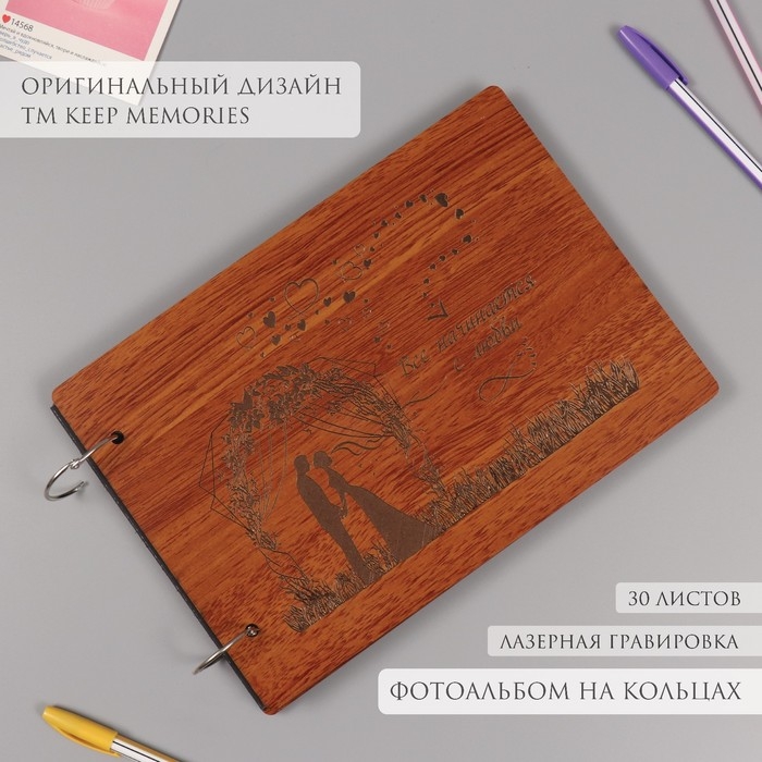 Фотоальбом 30 листов "Свадебный день. Всё начинается с любви" 27х19х2 см