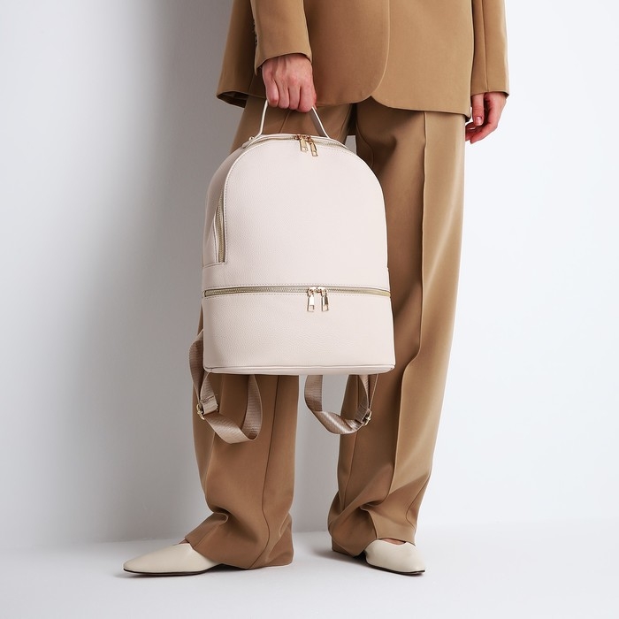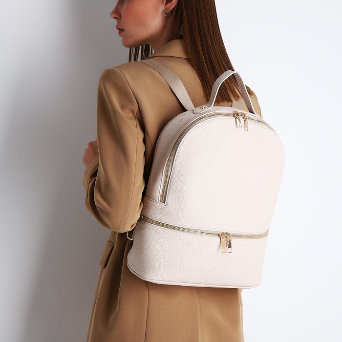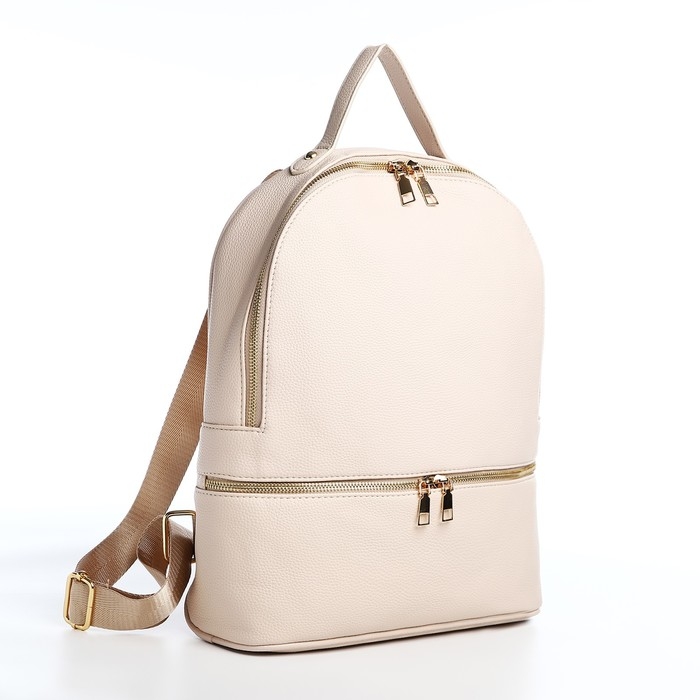 Рюкзак женский из искусственной кожи на молнии, 2 кармана, цвет бежевый