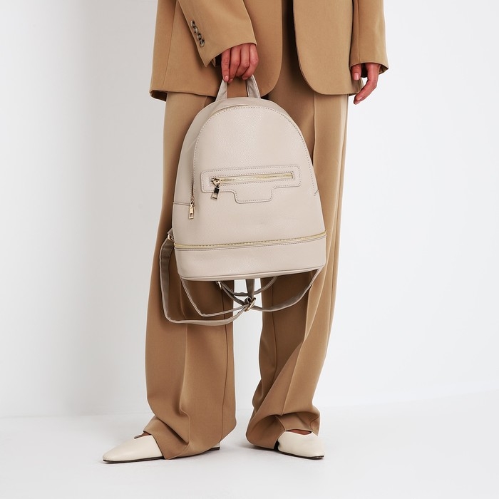 Рюкзак женский из искусственной кожи на молнии, 1 карман, цвет бежевый