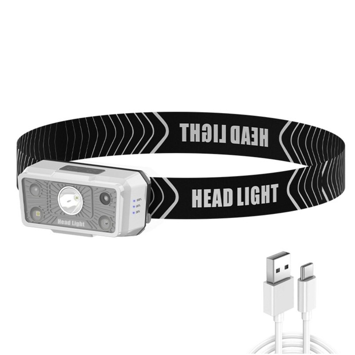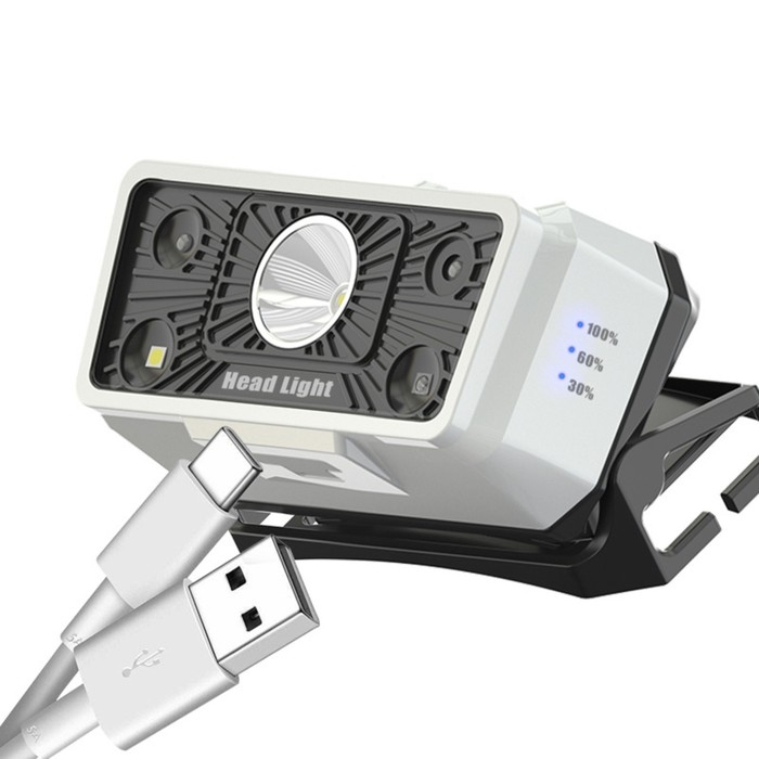 Фонарь налобный аккумуляторный, 180 лм, 1200 мАч, XPG, 2835, 5 режимов, датчик движения
