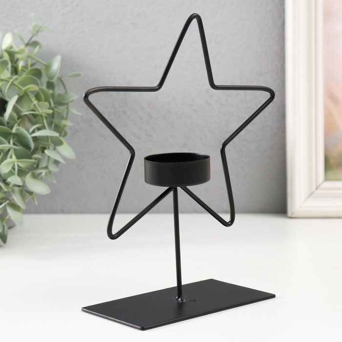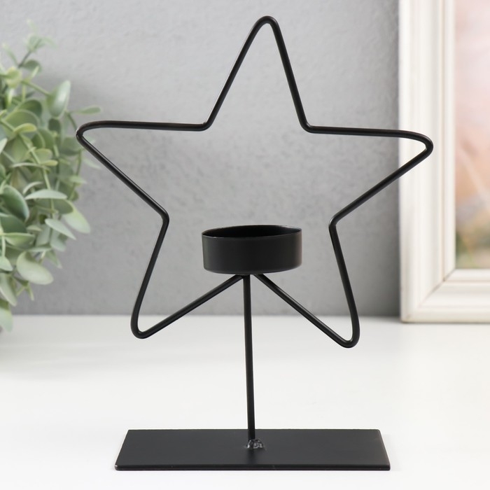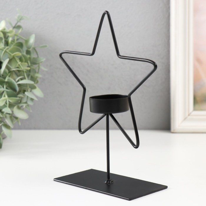 Подсвечник металл на 1 свечу "Звезда" d=4 см черный 14,5х6х19,5 см
