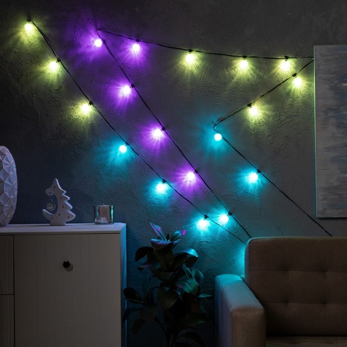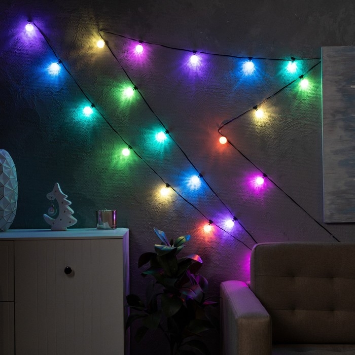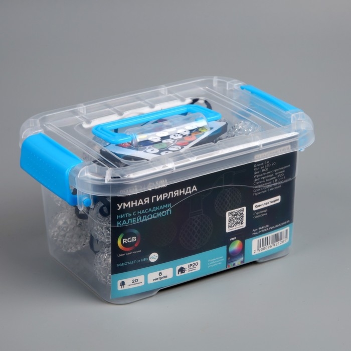 Умная гирлянда «Нить» 6 м с насадками «Калейдоскоп», IP20, тёмная нить, 20 LED, свечение RGB, USB