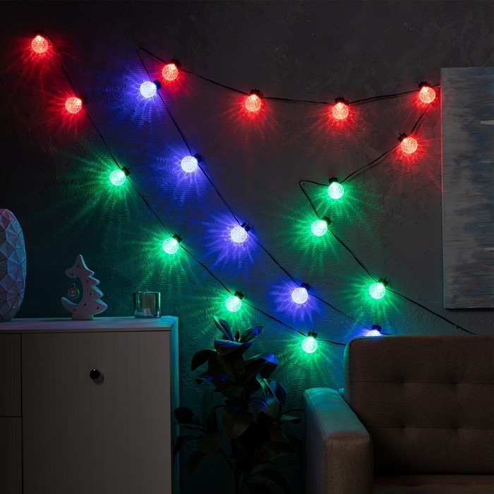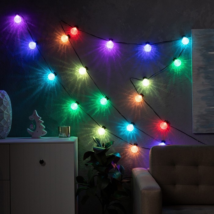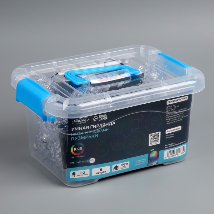 Умная гирлянда «Нить» 6 м с насадками «Пузырьки», IP20, тёмная нить, 20 LED, свечение RGB, USB
